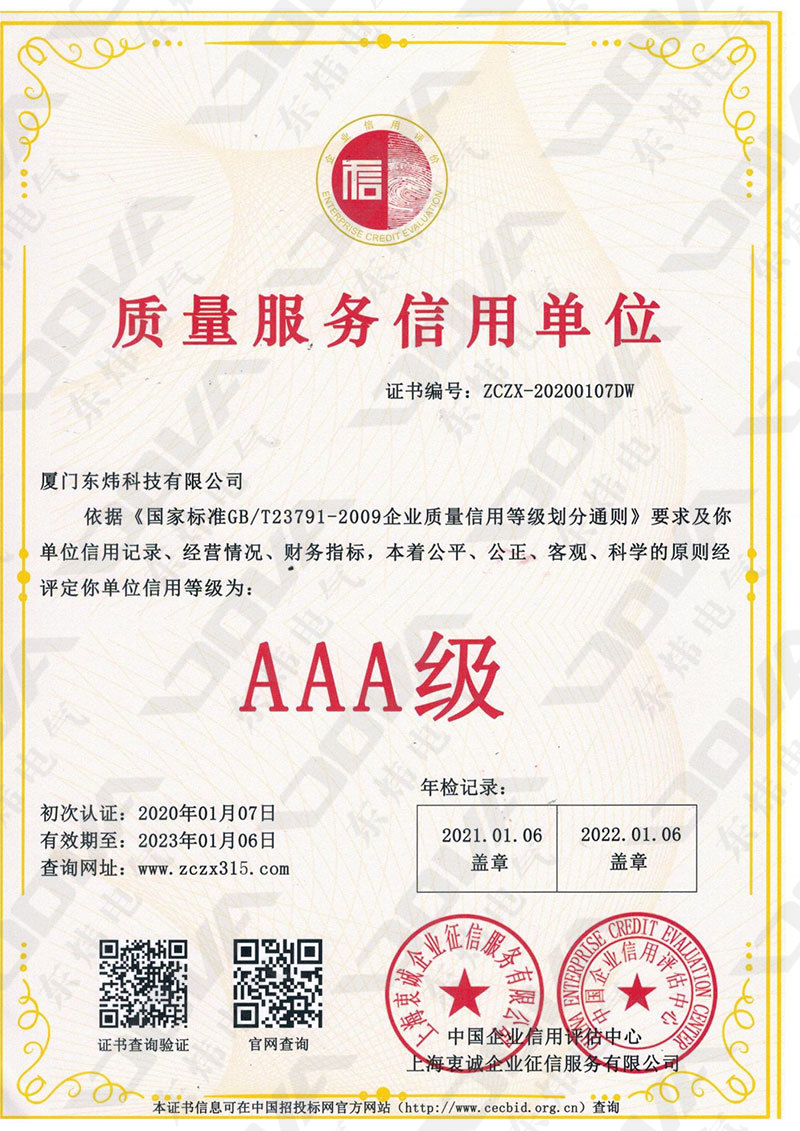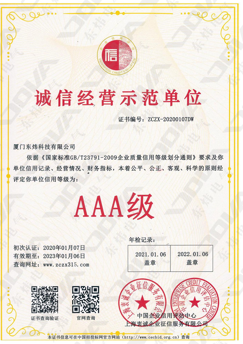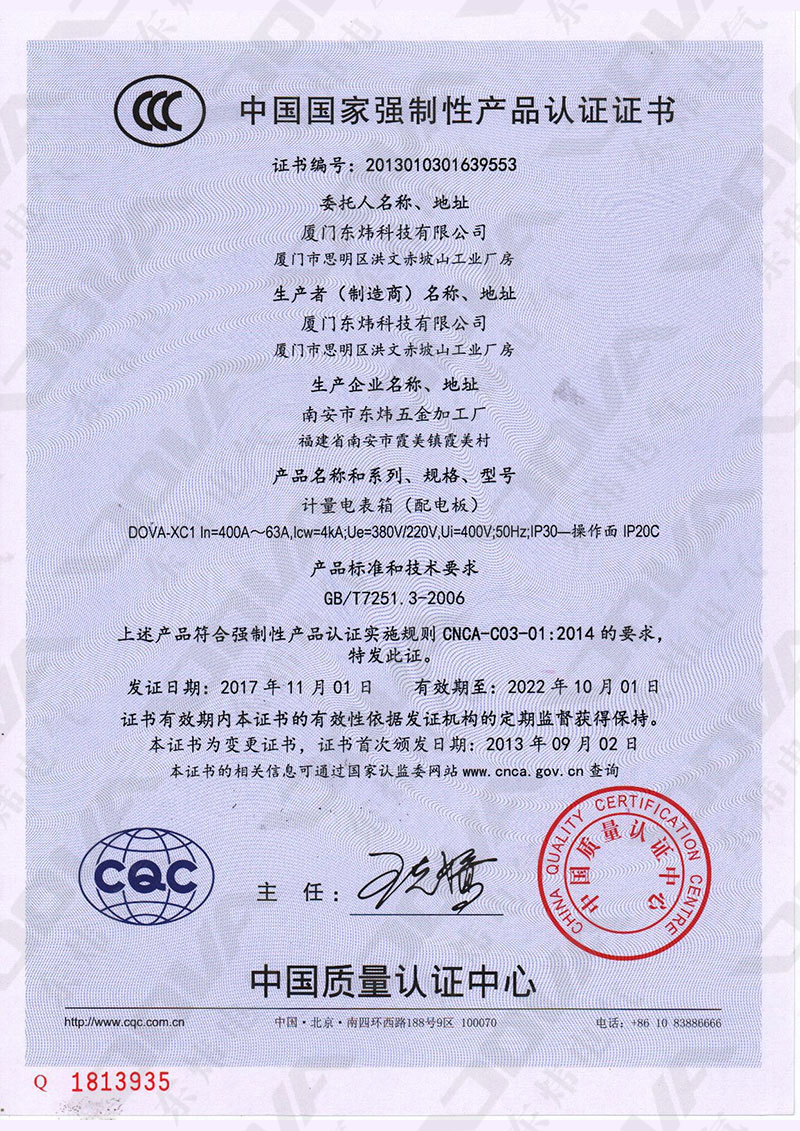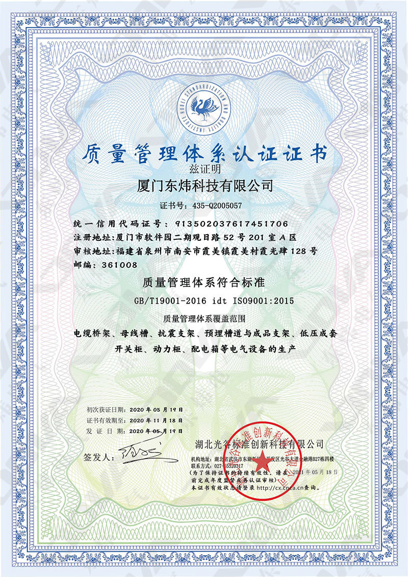 公司已通过 GB/T19001-2000/ISO9001:2000 质量管理体系认证,并依据其标准建立了 完善的质量管理体系,连续几年被评为“重合同、守信用单位”和“技术创新示范企业”; 产品通过国家有关权威机构检测和国家强制性产品认证(“3C”认证);“东炜”商标经国家 工商管理总局注册,在市场上享有较高的知名度和美誉度。